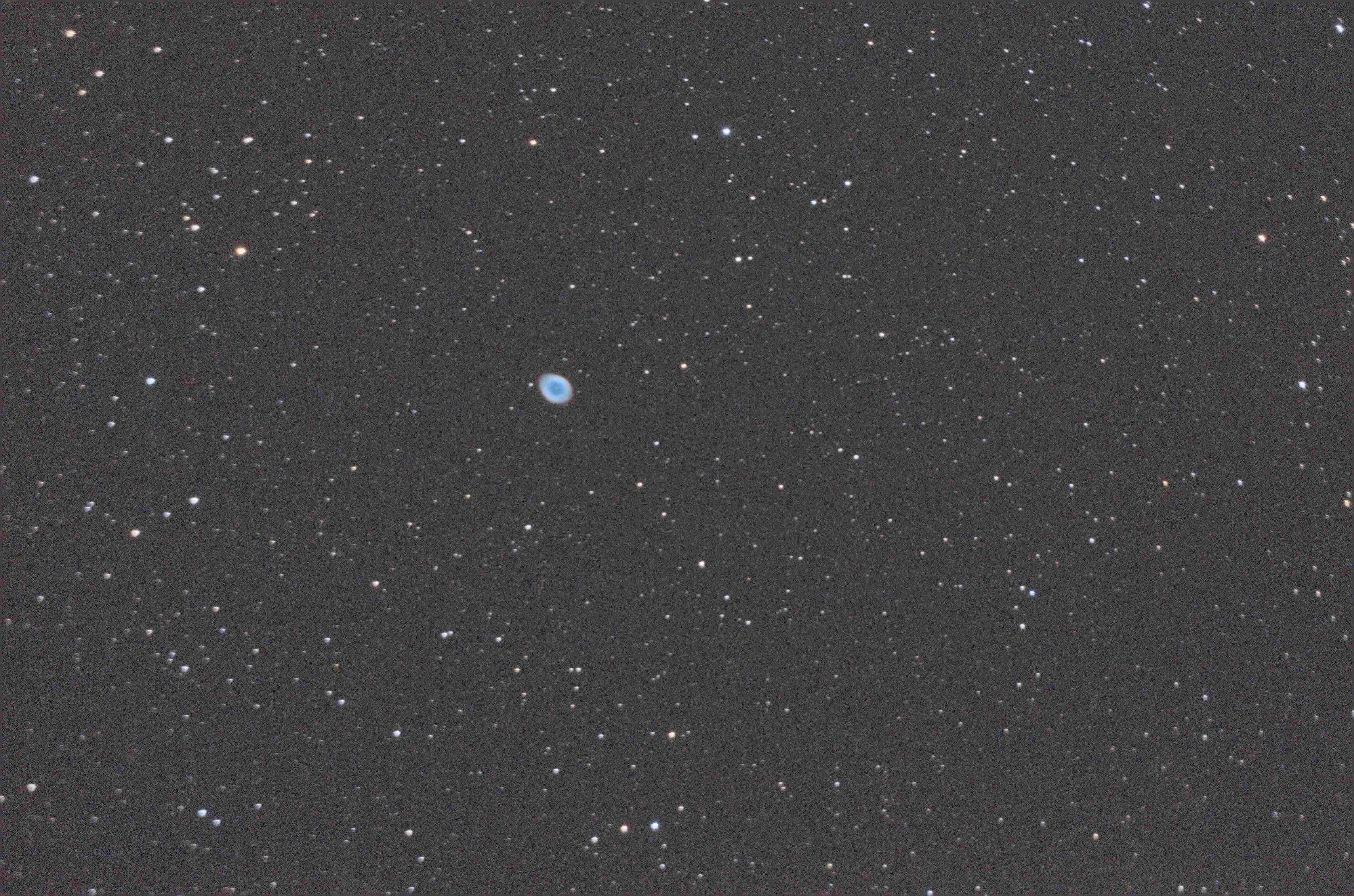 Au cours des deux premières observations, essentiellement visuelles, les élèves auront pu observer le premier quartier de Lune le 11 octobre, et quelques jours plus tard, la pleine Lune le 18 octobre (photos ci-dessous). La géante Saturne était également observable ces soirées-là, minuscule à l’oculaire mais faisant bien apparaître ses admirables anneaux. Lors de la troisième séance, en l’absence de Lune le 22 novembre, nous avons pu photographier la fameuse nébuleuse M 57 dans la constellation de la Lyre. A cet effet, nous avons réalisé plusieurs photos brutes totalisant une pose de 15 minutes. Sur la photo brute ci-dessous correspondant à une exposition d’une seule minute, on voit déjà apparaître la nébuleuse sur un fond plutôt gris. Par contre la photo finale, obtenu après prétraitement et empilement (en utilisant le logiciel d’astronomie Siril) nous dévoile sur un fond noir la splendide nébuleuse de la Lyre M 57...