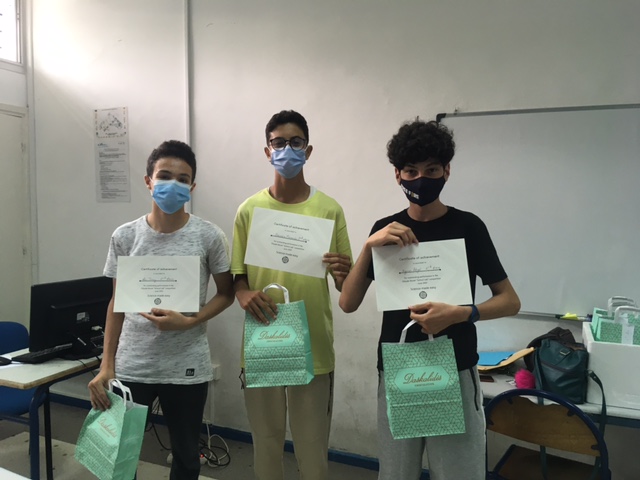 Les lauréats sont : Malak Merzouki, Ghita Touij et Lina Bellabes à la 1ère place, Ali Touij, Zakaria Merzouki et Ayman Adyel à la 2è place, Alia Youssefi, Mohamed Mahi et Ines El Attaoui à la 3è place et Lilia Melle, Baya Daudey et Fanny Lacroix à la 4è place.
