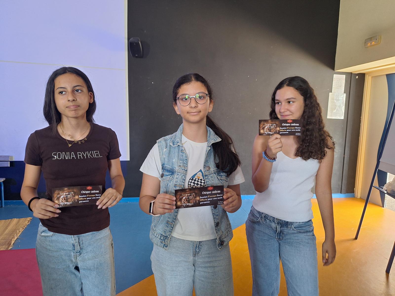 Grâce au foyer socio-éducatif, les élèves ont ensuite pu être récompensés pour leur travail tout au long de l'année dans le cadre de ce projet : des bons-cadeaux pour des livres, ainsi que des tickets d'escape games leur ont notamment été offerts, afin de récompenser leurs plus belles créations, orales comme écrites. Un grand merci donc au FSE, et à tous les élèves ayant participé au projet, pour leur bel enthousiasme et leur investissement !