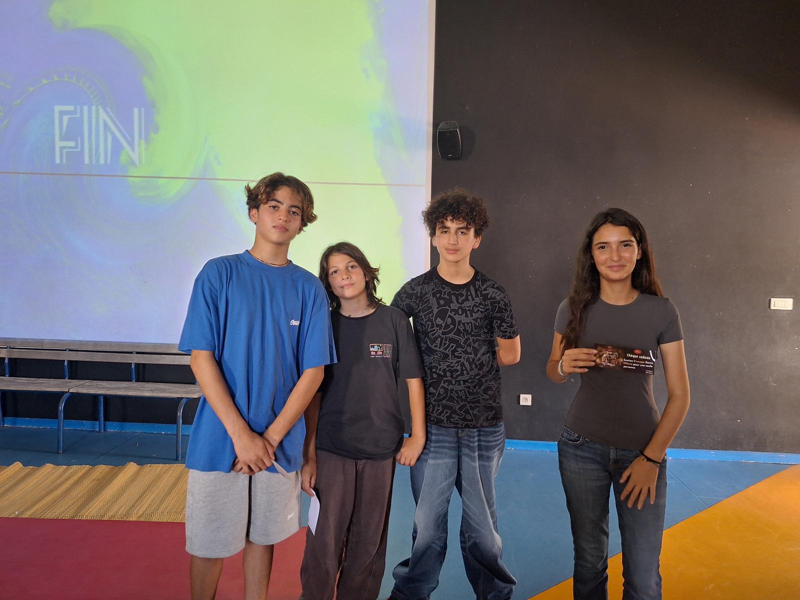 L’équipe gagnante du tournoi de contes : "Les Guerriers et les Licornes" (O'Sean Robelin, Omar El Yousfi, Rita Essakhi et Adam Benjelloun)